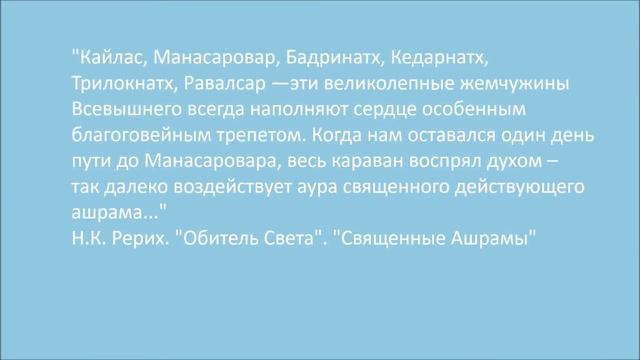 "Путь на Кайлас. Гора Кайлас". Н. К. Рерих Видеоряд из картин Н. К. Рериха. "Перед нами путь на Кайлас. Высится одно из пятнадцати священных чудес, исчисленных в книгах Тибета. Гора Колокола. По острым кряжам ходят к вершине ее. Стоит она поверх последнего можжевельника, поверх всех желтых и белых складок нагорных. Тут ходил и Падма Самбхава, о том говорит древний монастырь Гандола. Именно здесь пещеры Миларепы. И не одна но многие, освященные именем отшельника, слушавшего перед зарею голоса дэв. Здесь же и духовные твердыни Гаутама Риши. Недалеко и легенды, сложенные около Пахари Баба. Ходили тут многие Риши. И тот, который дал горе зовущее имя колокола, тоже думал о колоколе для всех, о помощи всем, о Благе Вселенском! Здесь жили Риши... Смотреть видео...